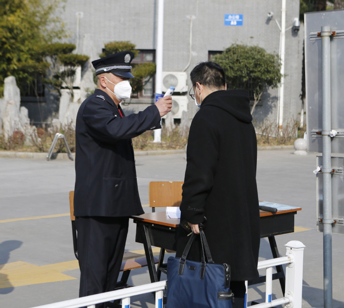 “守好门,看好人。”防疫期间,保卫处采取“单门双人双岗”,对进入校园的人员和车辆进行身份查验和体温检测。建立“教工无有效证件不得进校、合作单位人员无引领不得进校、入校人员体温测量需合格”防控机制,“不漏一车、不漏一人”,把好“排查关”,不放过一个可疑点。