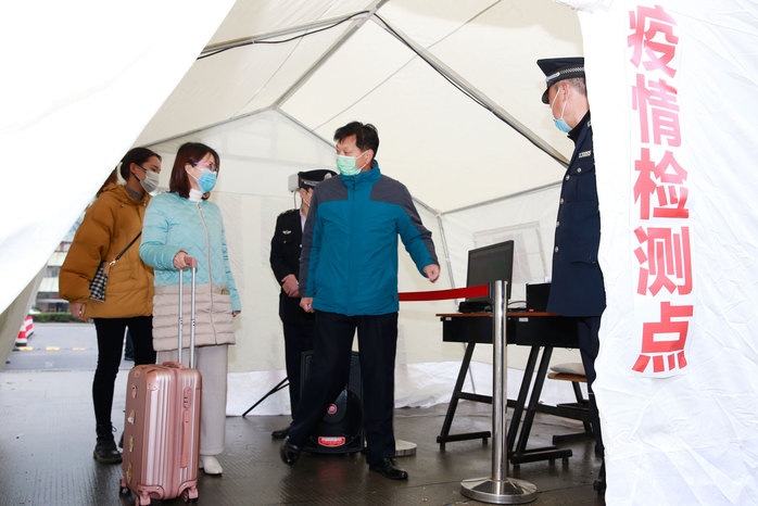 2月4日晚8时许,西校区门卫人员江林、邓少俊在执勤过程中,发现一名四川籍学生提前返校,及时报告保卫处领导,安抚学生直到学院负责人到场协调处理。2月17日,南校区值班队员周建海、沈明发现有2名江西籍人员返回南校区校内租住地,因不明其生活动向及行动轨迹,为防止疫情输入,校卫队在向保卫处报告的同时,主动与社区取得联系告知情况,协助社区对2名外来务工人员实施居家隔离。此后,保卫处组织校卫队联合社区展开外来租户人员全面摸底排查,及时堵漏深化封控措施。