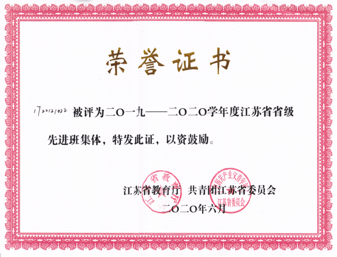 面实施导师制。2020年学院本科生创新创业项目立项 24 项,2017级本科生参加本创覆盖率为100%,2018级学生英语四级通过率88%。荣获“省级先进班集体”1个。