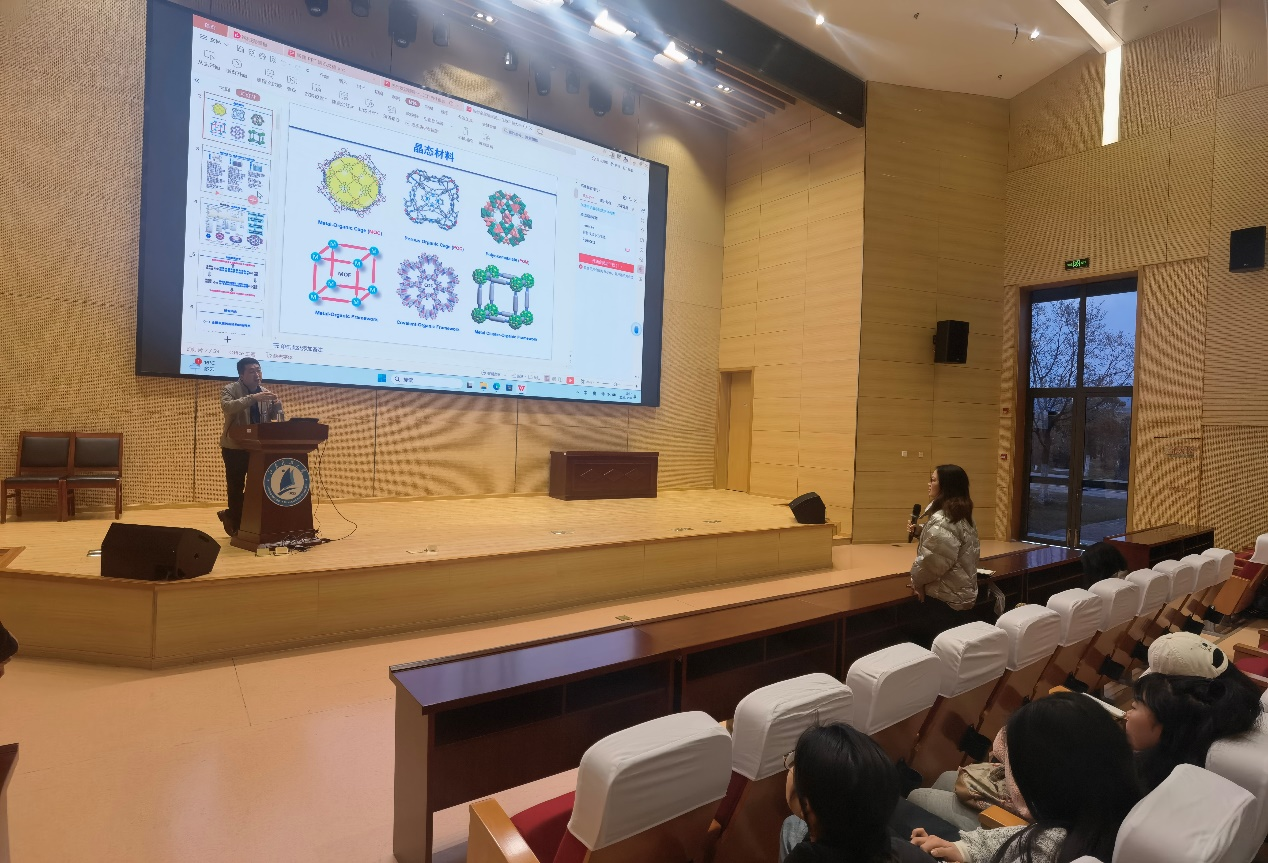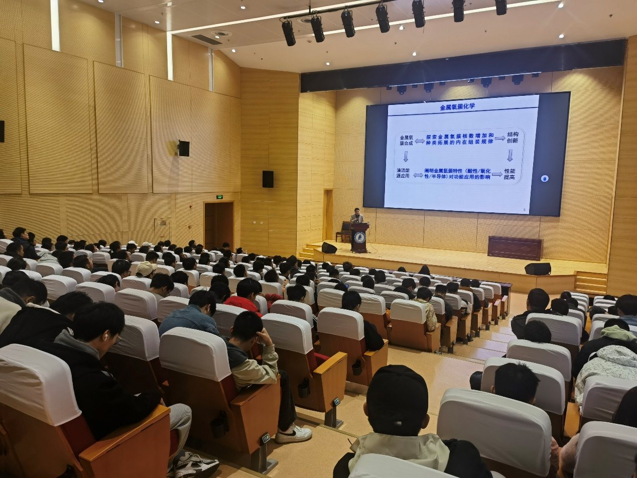 现场师生与兰教授就“新型能源的转化与应用技术”“多酸基材料的发展与应用”“光催化和电催化CO2还原技术”等问题展开热烈讨论与交流。兰教授广博的视野、幽默的语言以及独特的分析视角让在场师生对目前的新能源发展热点有了更深刻、清晰的了解。