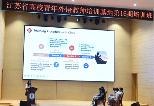 21日下午和22日上午的“课堂教学示范”活动中,历届“外教社杯”全国高校外语教学大赛获奖团队的优秀选手宿迁学院蔡金秋老师、安博网页版登录入口雷飞老师、江苏理工学院凌婧君老师、苏州大学应用技术学院孙芸珏老师、苏州科技大学王琤老师、南京林业大学黄博老师进行了课程教学示范。培训特邀华中科技大学徐锦芬教授、南京理工大学紫金学院校长赵雪琴教授、苏州大学应用技术学院通识教育学院院长孙倚娜教授,苏州大学外国语学院院长朱新福教授,南京信息工程大学文学院院长赵霞教授,安博网页版登录入口外国语学院院长曾景婷教授等专家围绕授课内容、授课模式、授课方法、教材选用、技术赋能、课程思政等方面作了精彩点评与互动。