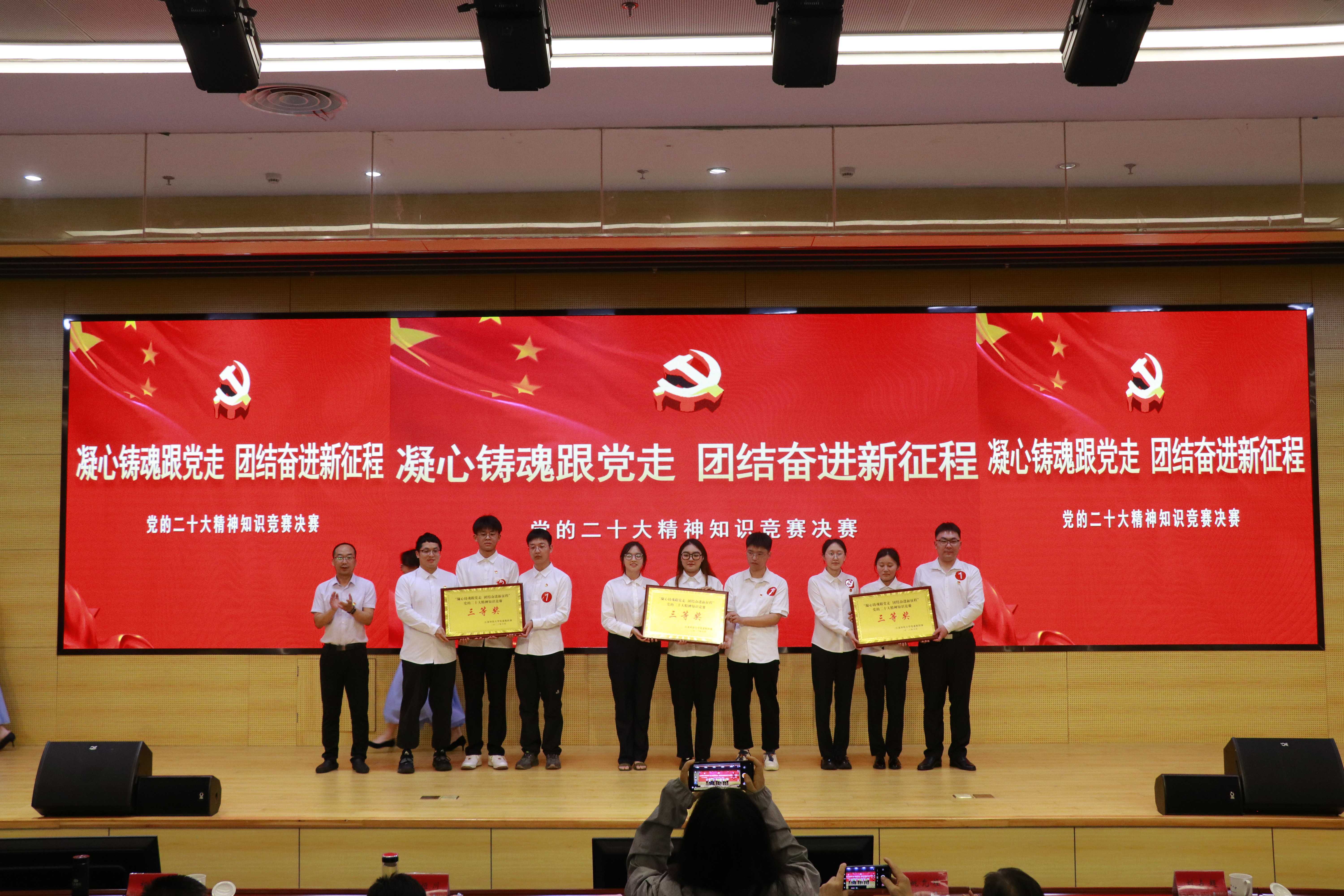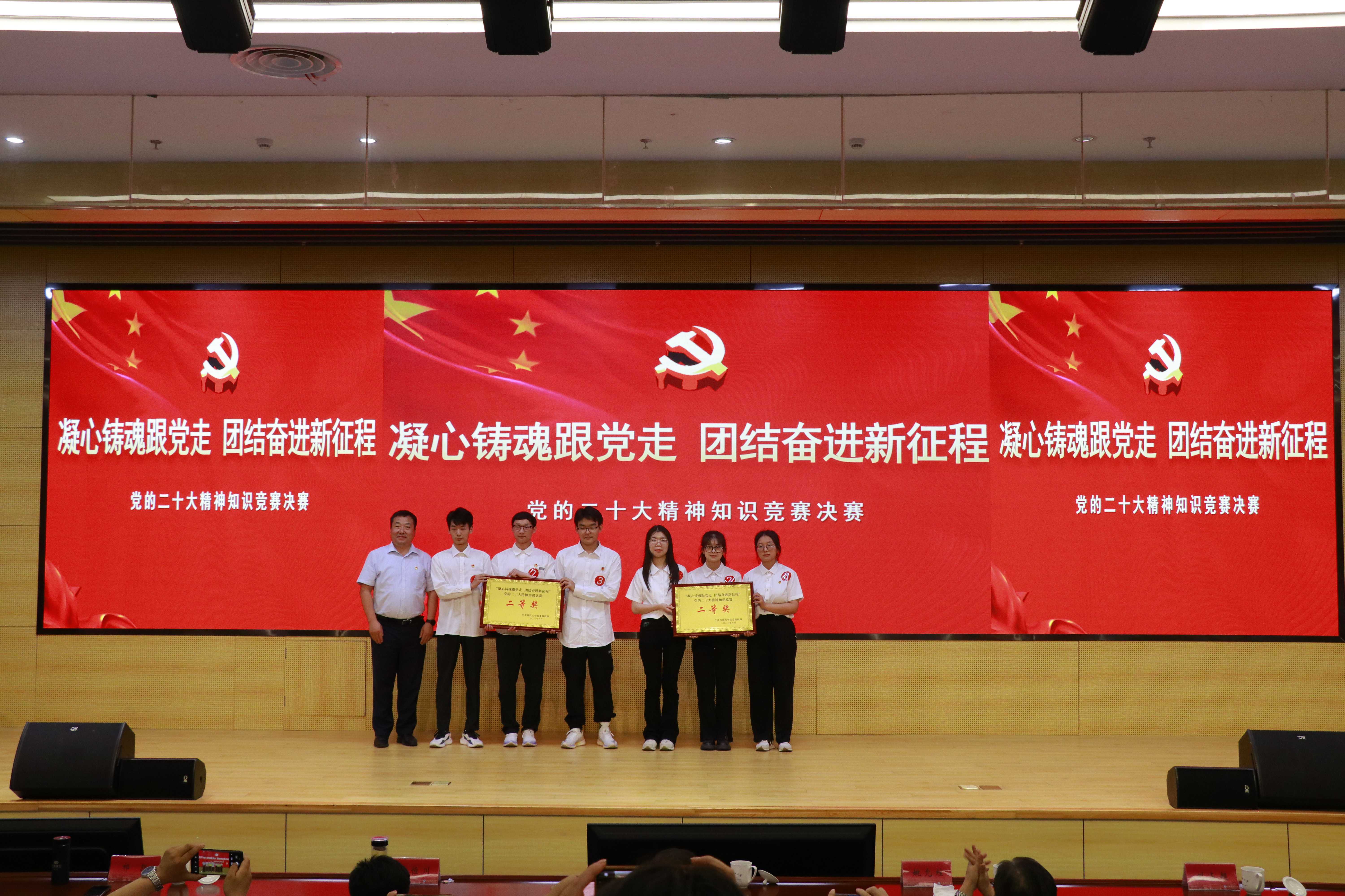 为深入开展学习贯彻习近平新时代中国特色社会主义思想主题教育,持续推动学习贯彻党的二十大精神走深走实,引导广大学生坚定不移听党话、跟党走,争做有理想、敢担当的、能吃苦、肯奋斗的新时代好青年,6月2日下午,“凝心铸魂跟党走,团结奋进新征程”党的二十大精神知识竞赛决赛在长山校区图书馆B105报告厅举行。校党委副书记汤建,党委常委、组织部部长李恒川出席本次大赛。党务工作专员姚允柱担任大赛指导专家,部分机关部门负责人、各学院书记、副书记、组织员、学生党支部书记、学生代表现场观摩比赛。