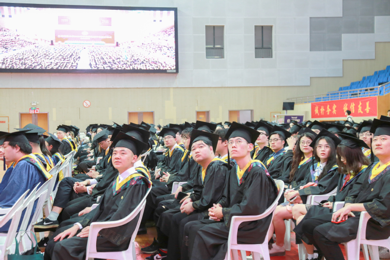 “今天以后,你们就要离开心中的‘浪浪山’,去各自的世界里做一个‘大人’了”,周南平细数诗意青春里可爱有趣的细节:“作为最后一批‘住客’,你们拥有着对悠然见南山的南校区、外号‘小牛村’的西校区的独家记忆;你们选修到了令人羡慕的潜水、浆板、皮划艇课程,划起了海韵湖第一年下水的端午节龙舟;你们吃到过江科大专属定制月饼、文创雪糕;你们用文理大楼的光学望远镜观测过中秋圆月、灿烂星河;你们看到了校园里天鹅宝宝的破壳而出;你们更见证了学校被遴选进入江苏高水平大学的行列.....”他希望这些母校留下的浪漫记忆,在毕业生们心中化为澎湃的爱意,帮助他们成长为活泼、善良、纯真的“大人”。