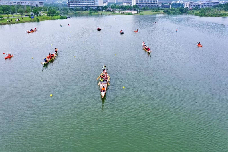 仲夏端午,龙舟竞渡。6月22日,安博网页版登录入口首届“龙游端午”龙舟师生联赛在长山校区海韵湖举行。