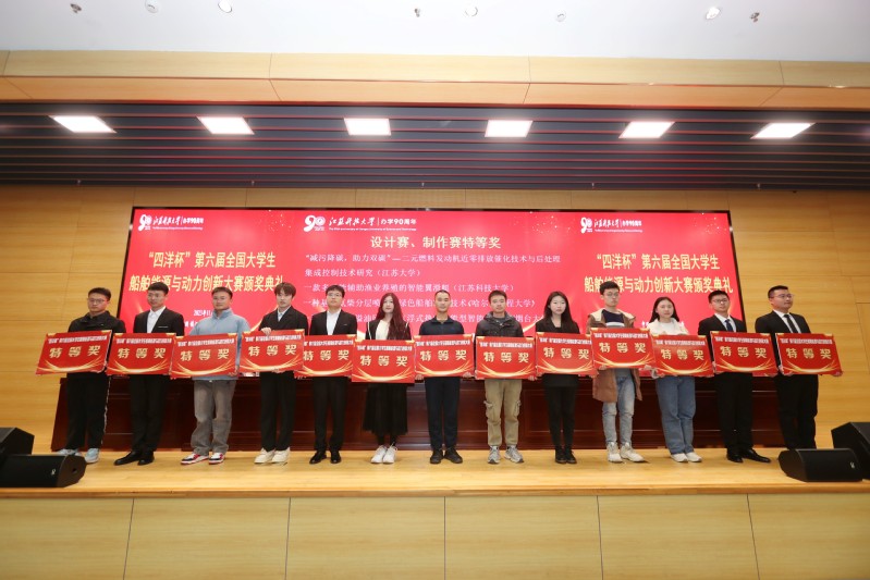 19日上午在图书馆105报告厅举行颁奖典礼,校党委常委、副校长胡爱祥,中国造船工程学会常务副秘书长金向军,江苏省科学技术协会学会部副部长鲍张智,江苏省造船工程学会秘书长鲍红淮,江苏省工程热物理学会秘书长陈晓平,江苏省内燃机学会秘书长贾和坤,以及学校教务处、双创学院、学生处、研工部、团委等职能部门领导出席颁奖仪式。颁奖典礼由安博网页版登录入口能源与动力学院院长陈代芬主持,金向军副秘书长、鲍张智副部长、鲍红淮秘书长分别宣读制作赛、设计赛和技能赛的表彰决定,与会领导嘉宾为获奖选手颁发荣誉证书。