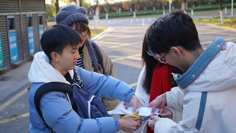 凛冽的寒风挡不住送关怀的脚步,深冬的严寒冷不了一颗颗送温暖的心。为确保活动顺利开展,工作人员先与学校的后勤主管核对当天保洁人员的工作地点和时间,为后续活动确定地点和时间。活动当天,志愿者们早早就开始准备材料,生姜、鞋垫、热水、暖水壶。随后志愿者们身着志愿马甲,同志愿者一起将一杯杯热气腾腾的姜茶送到每位在工作中的保洁工人手中,帮助他们驱散寒冷,叮嘱他们注意防寒并表达对他们的感激与祝福。同时志愿者们又分成两队,一队暂接环卫工人工作,替他们清洁校园,缓解其工作压力。另一队成员询问环卫工人鞋码尺寸,为他们裁剪合脚舒适的鞋垫,寓意着同学们对保洁工人的祝愿:幸福的路从脚下开始。面对志愿者们的嘘寒问暖,保洁工人们也表达了对志愿者们的祝福,嘱咐大家要及时增添衣物,注意冬季防寒保暖。“姜汤深深地温暖着我们的心,感谢同学们的关心。”看着保洁工人们脸上洋溢的笑容,同学们的内心也感受到了温暖与爱心。