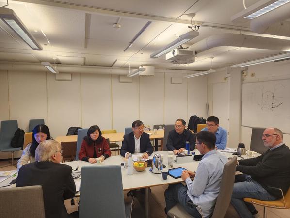 在挪威科技大学,周南平书记一行与该校工程学院海洋技术系主任斯韦勒·斯蒂恩、副主任艾利夫·佩德森教授等进行了友好会谈。周南平书记详细介绍了我校的办学情况、学科优势、科研成果及国际合作交流情况,强调了学校在“船舶、海洋、蚕桑”三大领域的特色优势,并指出挪威科大与我校在海洋技术学科高度契合,在教育、科研领域具有良好的合作前景,我校船舶与海洋工程学科多位教授及青年教师曾就读于挪威科大,希望两校能够加强线下人员往来,不断增进彼此了解,精准找到合作切入点。挪方介绍了挪威科技大学的基本办学情况,强调了该校海洋技术系在教育科研领域的特色和优势。双方就继续开展国际科研合作项目联合申报、拓展研究生交换及学分衔接项目、组织教师学术交流与互访等合作事项进行了深入交流。访问中,挪方还展示了该校在海洋技术与海洋科学领域的科研成果及实验室建设情况。