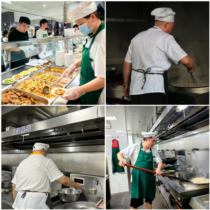 在酷热的天气里,后勤干部职工们各司其职,忙碌而有序,为约7000名留校师生的学习、生活和科研保驾护航。饮服中心开放5个餐厅,员工们在高温的厨房里挥汗如雨,精心准备每一份餐食,确保留校师生的饮食安全与营养健康。公寓中心不仅负责14个开放组团日常的值班与清洁工作,还提前为7129名新生入住做好充分的准备,从打扫房间到安排床位,每一项工作都细致入微。物业中心在做好所有开放办公楼、教学楼、图书馆等场所的物业服务的基础上,还完成大学生劳动基地日常管护、桑树修剪,并为学校各类比赛活动、会务等提供服务保障近70场次,同时加强防汛防台工作,确保校园环境的整洁与安全;校园管理科协调合作单位完成了草花补植、草坪铺设、抗旱浇水、病虫害防治、草坪除草、色块修剪等工作。