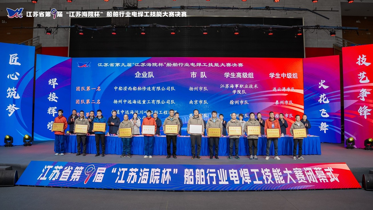 11月22日至24日,由省工业和信息化厅、省交通运输厅、省人力资源和社会保障厅、省总工会、中国船级社江苏分社、省船舶工业行业协会、省造船工程学会等七家单位共同主办的江苏省第九届“江苏海院杯”船舶行业电焊工技能大赛决赛在南京开赛,省工信厅副厅长、省国防科工办主任李锋,中国船级社江苏分社总经理杨琪,省交通运输厅副厅级干部、省造船工程学会理事长方建华,南京市工信局二级巡视员高长林,省职业技能鉴定中心主任杨进保,省船舶工业行业协会副会长崔杰、陈永道,承办单位江苏海事职业技术学院校长温华兵,以及各主办单位的相关同志、各设区市工信局分管负责同志出席开幕式,来自全省共19支规模以上企业队与10支市队的领队、指导老师、选手参加比赛。