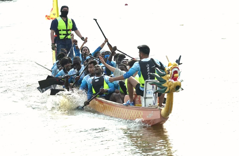 本次比赛分预赛和决赛两个阶段。当日,通海湖面热闹非凡,各高校龙舟队摩拳擦掌,跃跃欲试。我校参赛队由来自喀麦隆、孟加拉、巴基斯坦等国家的23名队员组成,计算机科学与技术专业的Jores担任队长 。