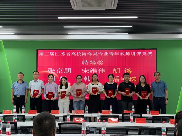 本届教学竞赛紧扣建设高质量教育体系主题,旨在推动省内涉海类专业高等教育教学改革,引导高校教师潜心教书育人,促进省内涉海高校之间的教学交流与合作。经过激烈的角逐,我校海洋学院刘彪老师荣获特等奖、毕雪洁和王莎老师荣获一等奖。